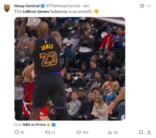 此役詹姆斯41岁后拿到第10场20+,其余的球员合计621场只有7次20+,詹姆斯再度刷新历史首人纪录。