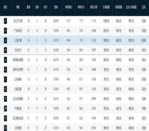 迄今为止,战绩排在北京队前面的队伍,分别是卫冕冠军广厦队(16-2)、广东队(15-4)和上海队(15-3)。