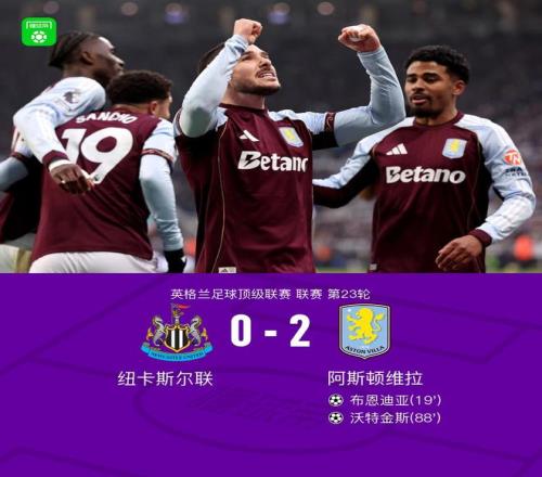 北京时间1月25日,英超联赛第23轮,纽卡斯尔联主场对阵阿斯顿维拉。摩根-罗杰斯送出助攻,布恩迪亚远射先拔头筹;随后迪涅送出助攻,沃特金斯头球破门锁定胜局。最终,维拉客场2-0战胜纽卡,继续稳居第三。