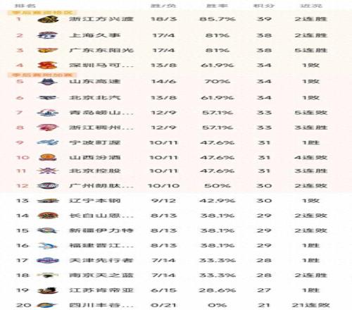 CBA排名一夜大变:上海第2,深圳第4,青岛5连败,四川21连败垫底