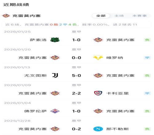 克雷莫内塞首发:1-奥代罗、24-菲利波·泰拉恰诺、6-巴斯奇罗托、55-弗利诺、3-佩泽拉、29-马勒、33-格拉西、7-泽尔宾、23-塞切里尼、90-博纳佐利、10-瓦尔迪