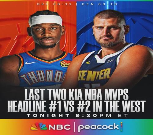 北京时间2月2日。NBA常规赛:掘金主场vs雷霆,西部第二大战西部第一。亚历山大和约基奇,本赛季两大MVP热门的正面对决。今天是约基奇伤愈复出的第二场比赛,他本赛季已经缺席16场,如果想评奖的话,最多只能再缺席1场。
