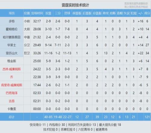 亚历山大投篮16中11,三分2中1,罚球13中11,砍下34分5篮板13助攻2抢断1盖帽4失误,正负值+22全场最高。约基奇9投6中,三分2中1,罚球4中3,拿到16分7篮板8助攻1抢断6失误,正负值-7。MVP之争,亚历山大胜出了。