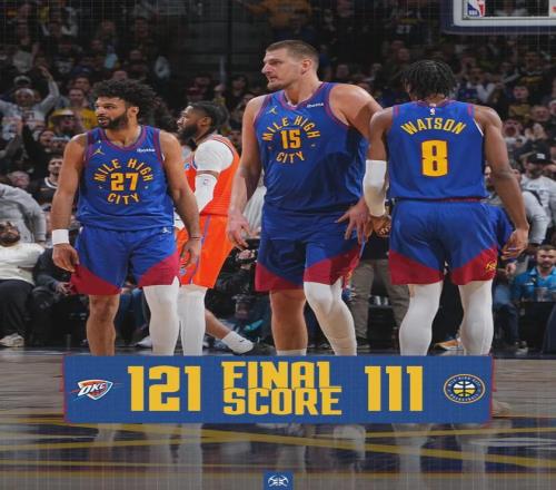 16分的分差并不算太大,但是以约老师和穆雷今天的状态,掘金也很难翻盘。第四节还剩3分钟,雷霆依然领先17分,掘金换下主力球员。全场结束,掘金111-121不敌雷霆。刚刚入选全明星的贾马尔-穆雷16中4,小哈达威6中0。